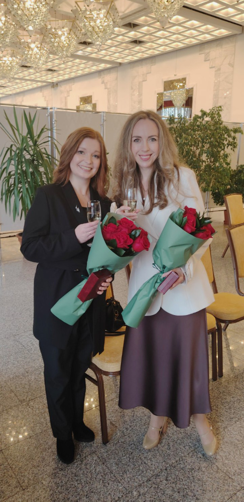 От всей души поздравляем Елену и Ольгу с этим знаменательным событием! Мы счастливы и очень гордимся вами! Мы благодарим вас за бесконечную любовь к своей профессии, за то, что более двух десятилетий верно служите высокому хореографическому искусству в нашем коллективе! Столь высокие награды вы заслужили за свой яркий талант, упорный труд, терпение.