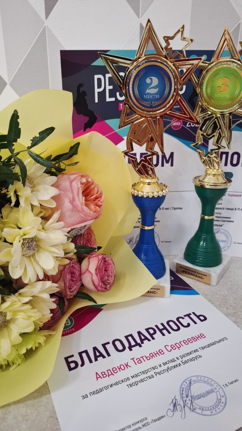 Ребята завоевали Диплом лауреата II степени за номер «Вясна на калочку» и Диплом лауреата III степени за номер «Заліпуха». Преподаватель Авдеюк Татьяна Сергеевна удостоена Благодарности фестиваля за педагогическое мастерство и вклад в развитие танцевального творчества Республики Беларусь.