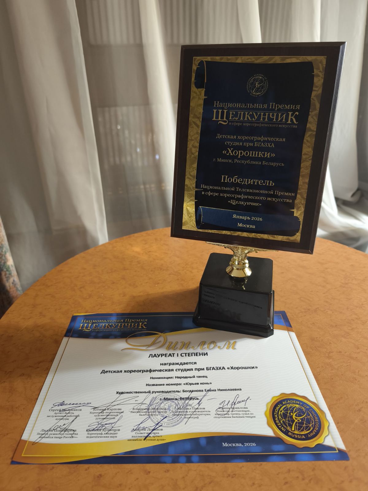 Девушки завоевали сразу две значимые награды в г. Москве: диплом Лауреата I степени на хореографическом конкурсе «Национальная премия «Щелкунчик» и диплом Победителя Национальной телевизионной премии в сфере хореографического искусства «Щелкунчик»!