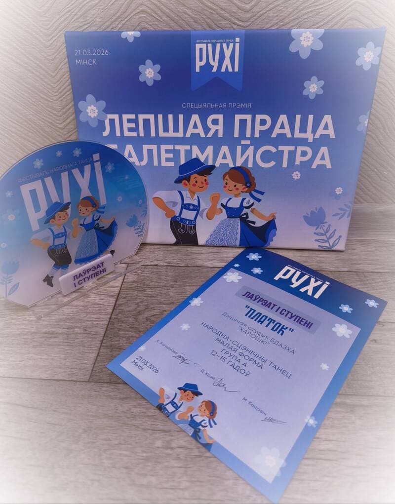 Воспитанницы Рубчени Татьяны Анатольевны завоевали в минувшие выходные диплом Лауреата I степени за номер «Платок» в категории «Народно-сценический танец», возрастная категория 12-15 лет.