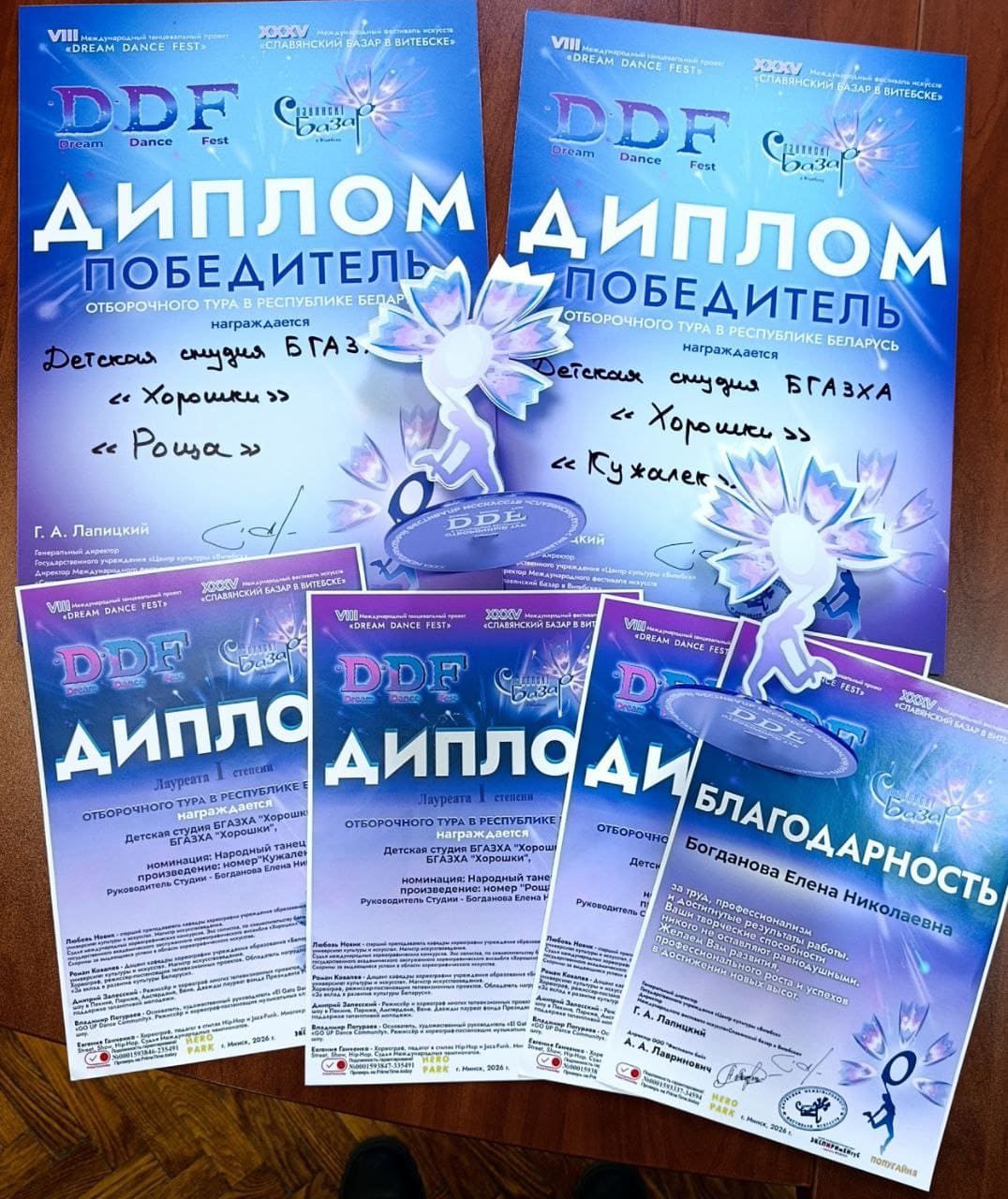Старшая группа студии завоевала Дипломы лауреата I степени за номера «Роща» и «Кужалёк» в номинации «Народный танец», преподаватель – Богданова Елена Николаевна. Средняя группа удостоена Диплома лауреата II степени за номер «Юрьев конь» в номинации «Народный танец», преподаватель – Рубченя Татьяна Анатольевна.