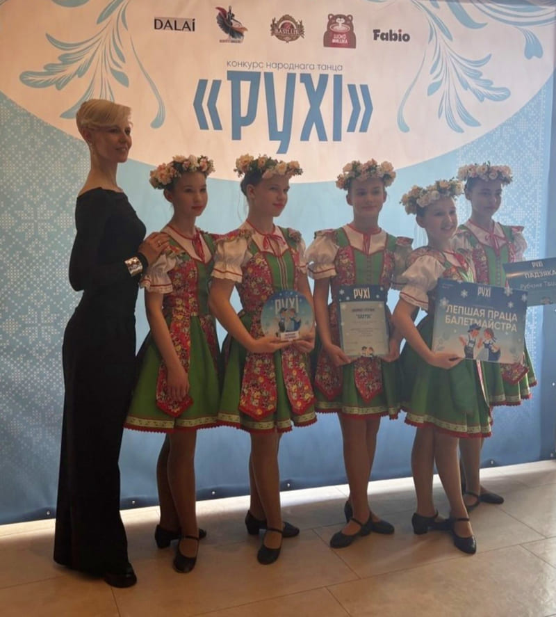 Воспитанницы Рубчени Татьяны Анатольевны завоевали в минувшие выходные диплом Лауреата I степени за номер «Платок» в категории «Народно-сценический танец», возрастная категория 12-15 лет.
